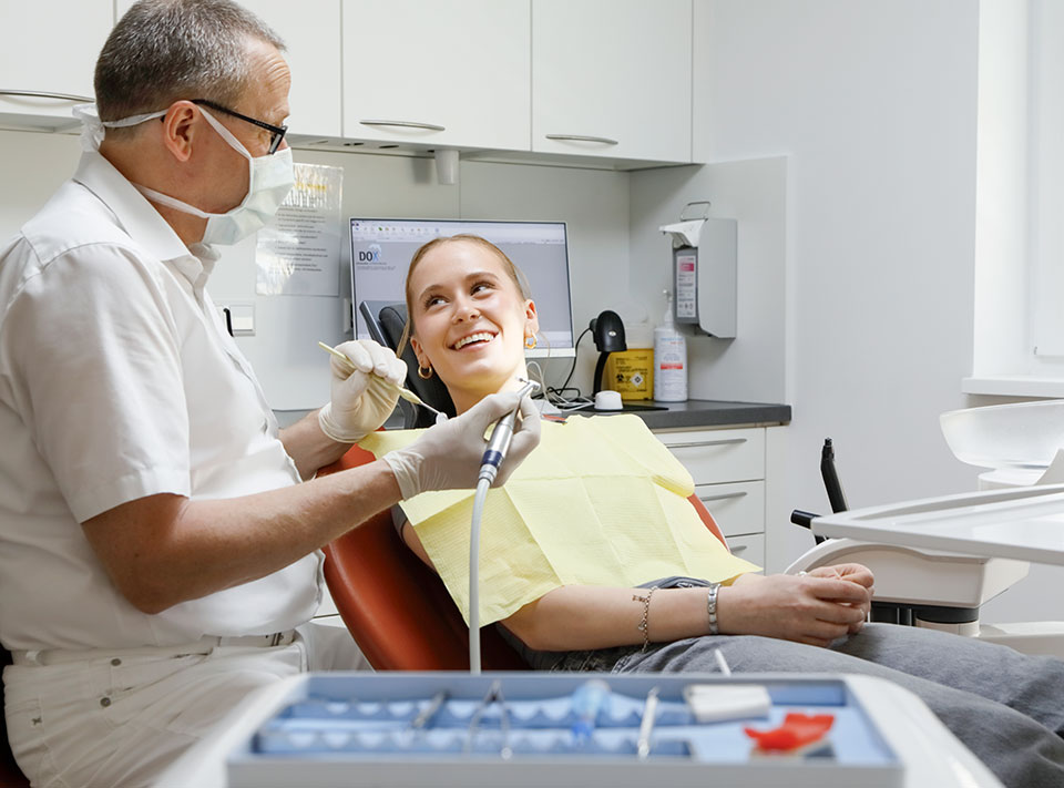 Manchmal kommt es hart auf hart – egal ob beim Sport mit temperamentvollem Einsatz oder beim Essen, wenn man zum Beispiel auf einen Kirschkern beißt: Bricht ein Stück vom Zahn ab, muss der Schaden repariert werden.